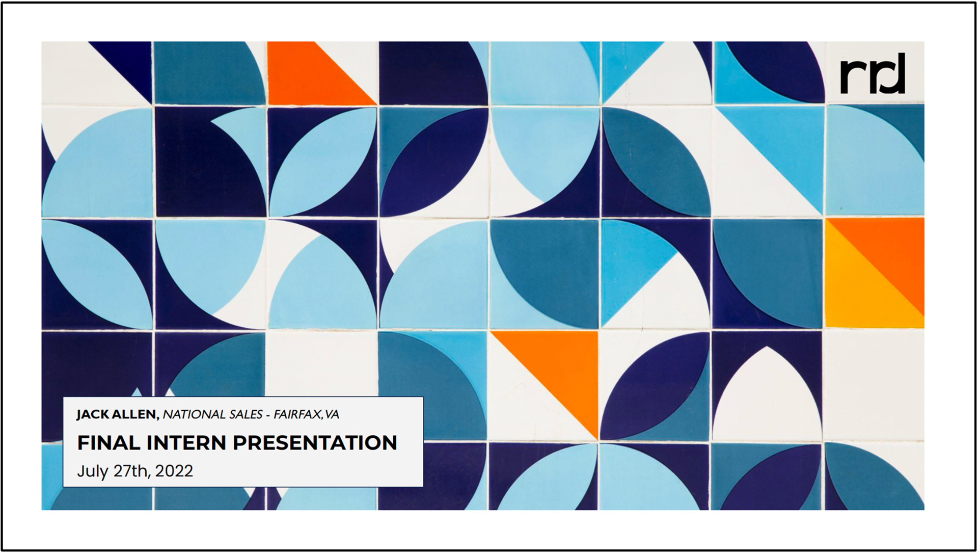 Click on the image below to see a summary of my internship experience: the projects I worked on, lessons learned, and suggestions for RRD. I presented this at the conclusion of my internship to fellow interns, full-time coworkers, and company leadership.